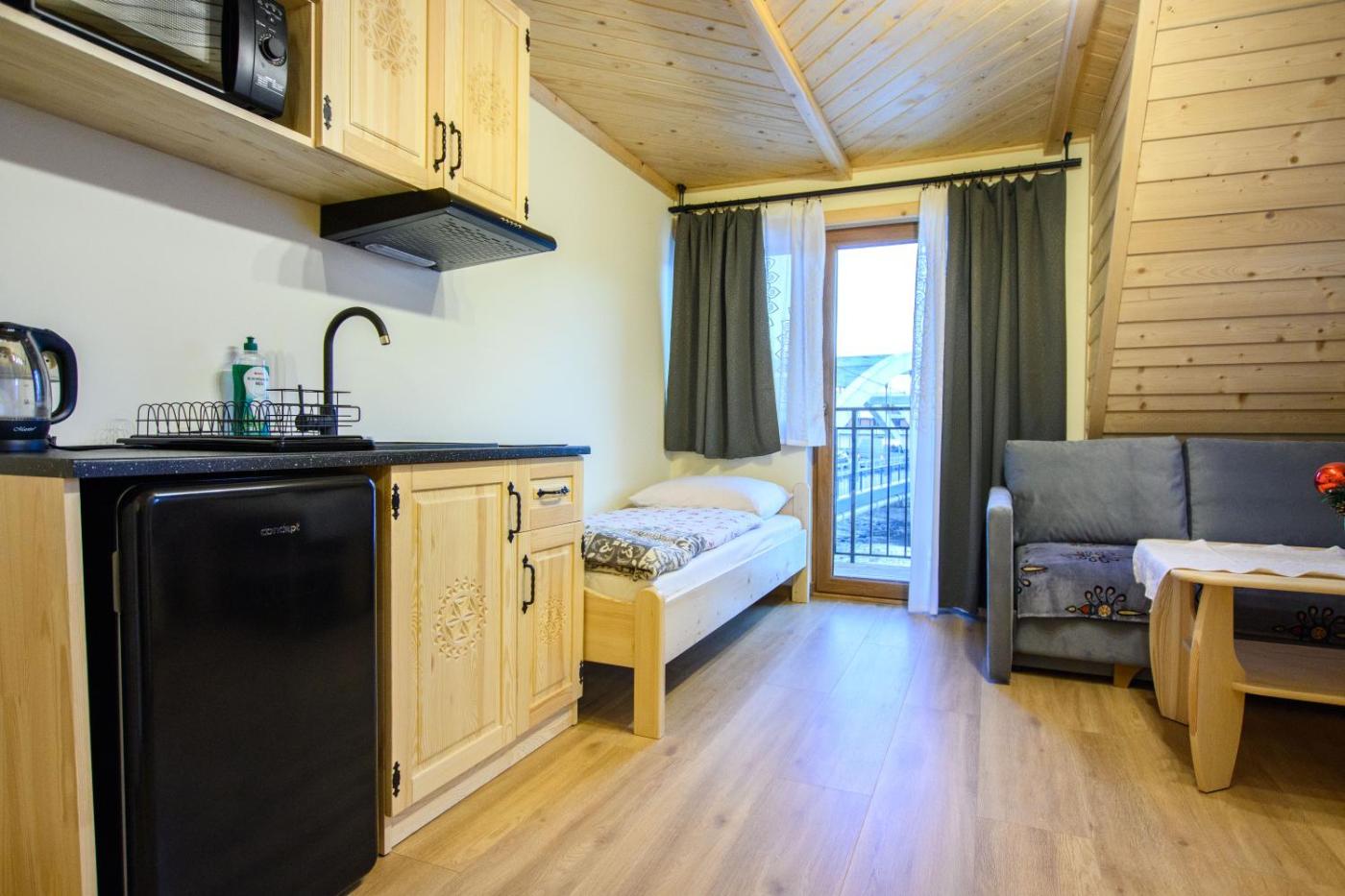 Apartament. This apartment comprises 1 bedroom, a kitchenette and 1 bathroom with a shower and a hairdryer. In the kitchenette, guests will find a stovetop, a refrigerator, kitchenware and a microwave. Featuring a balcony with mountain views, this apartment also provides a wardrobe and a flat-screen TV with streaming services. The unit offers 2 beds. Apartament - 3 osobowy. Powierzchnia pokoju ok.: 17 mkw.