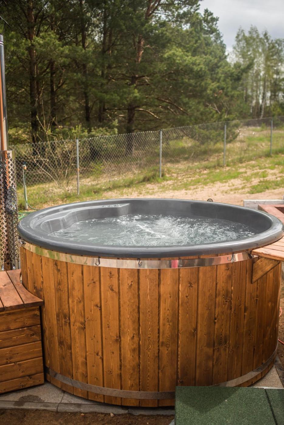 Obiekt Mazury w Pigułce- domek z sauną i balią, Woszczele oferuje wannę z hydromasażem. Obiekt Mazury w Pigułce- domek z sauną i balią, Woszczele oferuje plac zabaw.