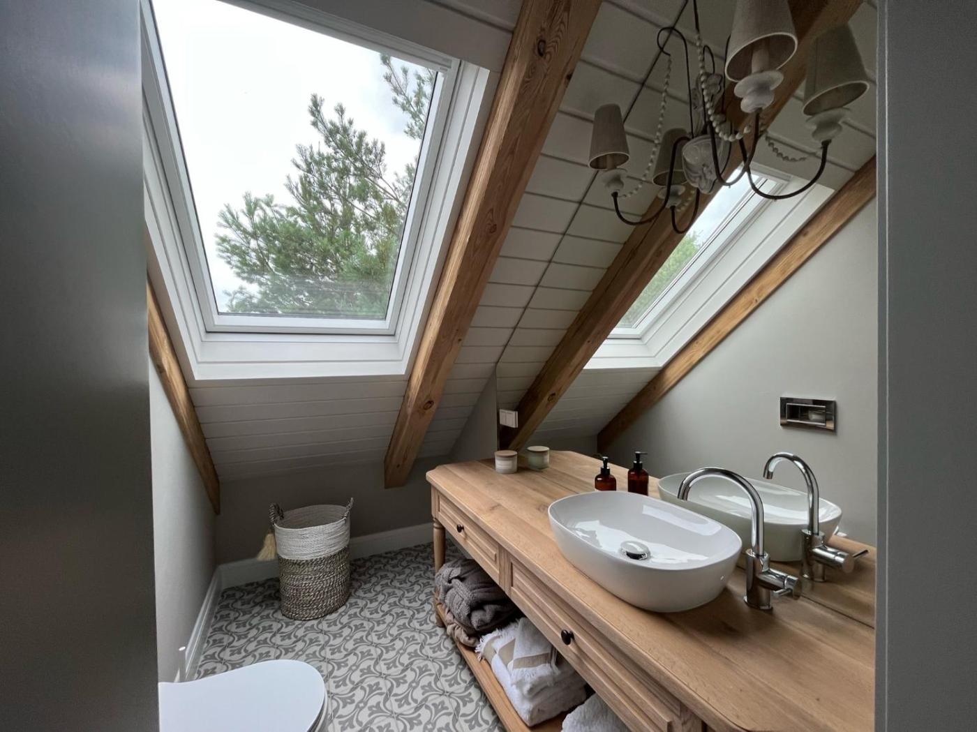 Dom z 2 sypialniami. This holiday homes special features are the sauna and the fireplace. Meals can be prepared in the kitchen, which comes with a stovetop, a refrigerator, a dishwasher and kitchenware. The spacious holiday home provides a washing machine, a tea and coffee maker, a terrace with garden views as well as a shared bathroom featuring a shower. The unit offers 3 beds. Dom wakacyjny - 6 osobowy. Powierzchnia pokoju ok.: 140 mkw.