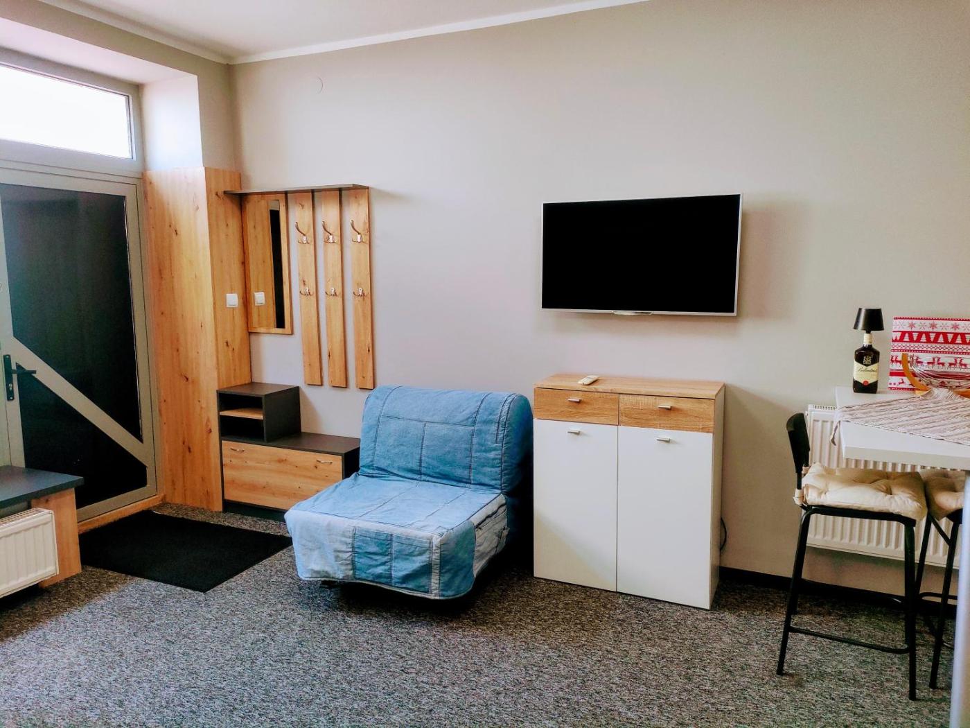 Apartament z 1 sypialnią. This apartment comes with 1 bedroom, a kitchenette and 1 bathroom with a shower and a hairdryer. Guests can make meals in the kitchenette that features a stovetop, a refrigerator, kitchenware and a microwave. The apartment features a washing machine, a dining area, an electric kettle along with heating. The unit has 3 beds. Apartament - 3 osobowy. Powierzchnia pokoju ok.: 30 mkw.