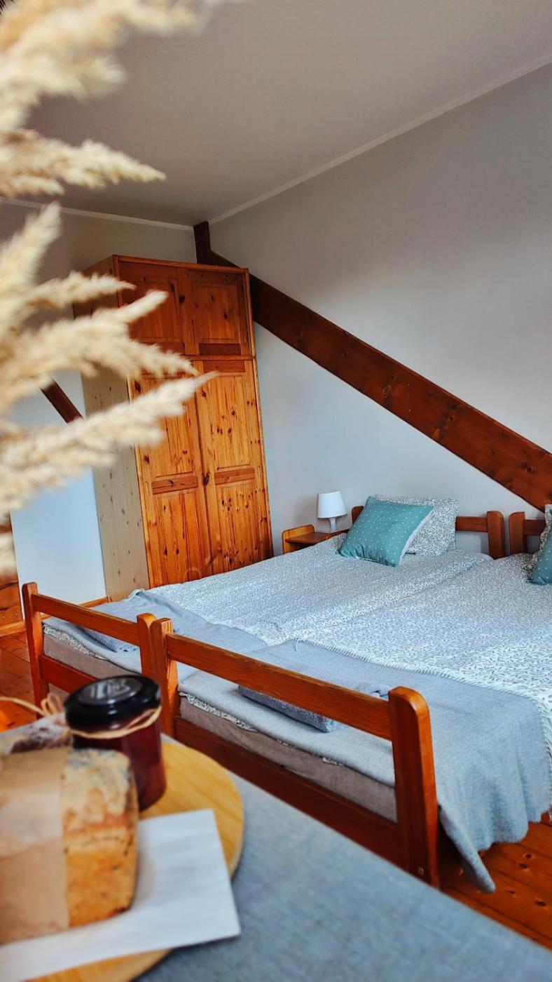 Pokój Czteroosobowy. The quadruple room features a wardrobe, parquet floors, as well as a private bathroom boasting a shower and a hairdryer. The unit has 4 beds. Pokój Czteroosobowy - 4 osobowy. Powierzchnia pokoju ok.: 20 mkw. ;
